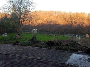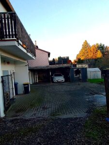 Das Haus besitzt eine Zufahrt zum Garten/Hof sowie zusätzlich eine Überdachung bzw. einen großen Carport sowie einen Geräteschuppen.